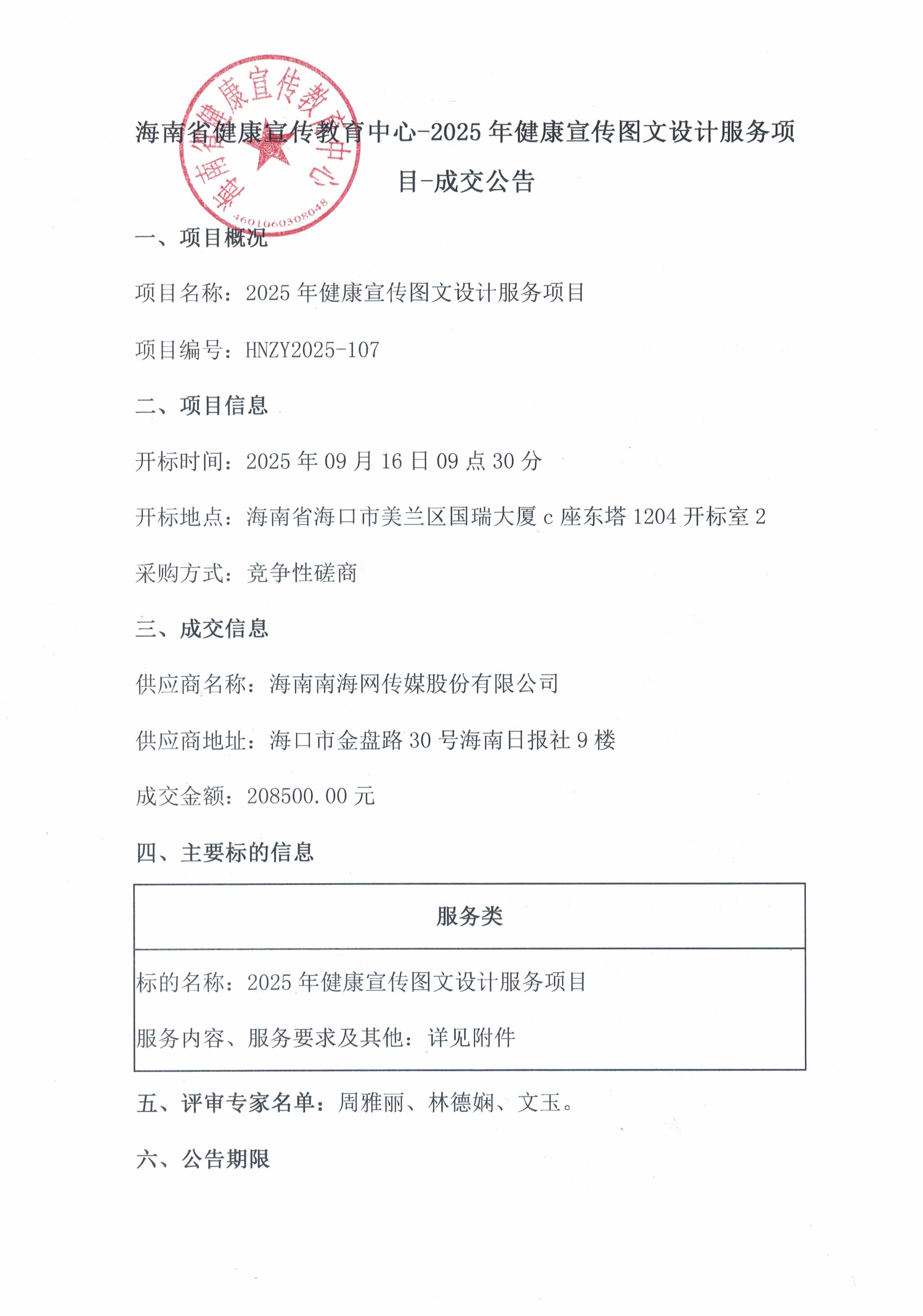 项目(HNZY2025-107)成交结果公告