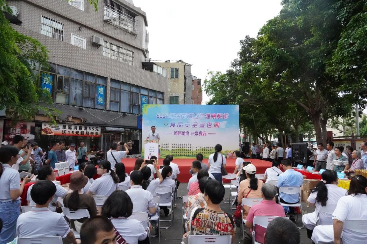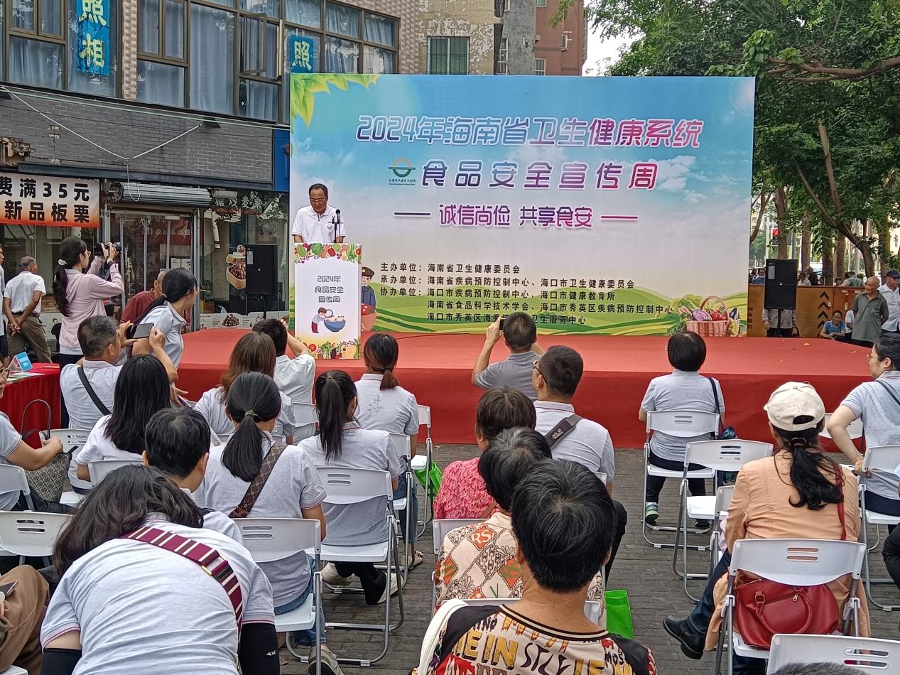 为深入贯彻落实食品安全战略,增强公众食品安全意识,保障人民群众舌尖上的安全,2024年10月22日上午,海南省卫生健康系统2024年食品安全宣传周活动在海口市秀英区秀华路正式启动,宣传主题为“诚信尚俭、共享食安”。本次启动仪式由海南省卫生健康委员会主办,海南省疾病预防控制中心、海口市卫生健康委员会承办,海口市疾病预防控制中心、海口市健康教育所、海南省食品科学技术学会、海口市秀英区疾病预防控制中心、秀英区海秀镇社区卫生服务中心等多家单位共同协办。省卫生健康委二级巡视员杜建伟和药政(食品)处处长陈翔、省疾控中心食安所所长马永忠、省疾控中心首席专家杨斌、海口市卫生健康委副主任莫少雄等相关单位领导及工作人员出席活动。