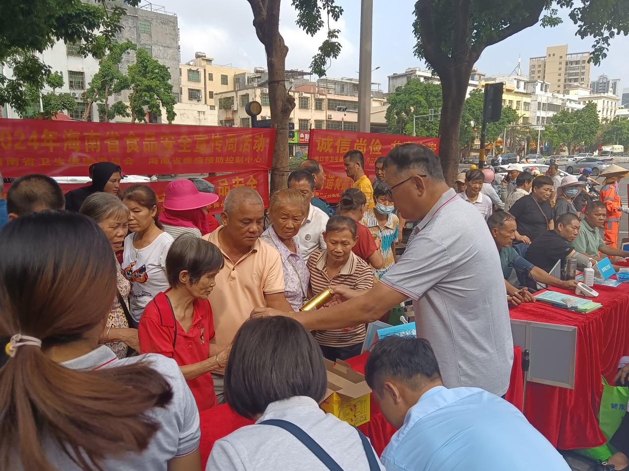 活动现场通过有奖问答、专家咨询、免费测量血压体重、发放食品安全宣传材料、播放食品安全视频等多种形式,开展食品安全与公众健康、食源性疾病预防、营养与健康促进、食品安全标准等多方面的科普教育宣传,伊利集团、海口椰彩食品有限公司提供营养健康食品参与现场宣传活动,多样化的宣传方式吸引了许多市民群众参与,现场活动人头攒动,气氛热烈,收到了预期的宣传效果。