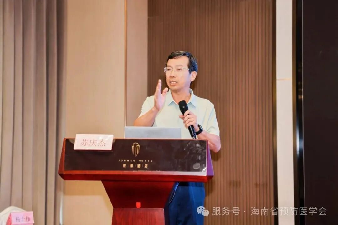 第一届专委会主任委员苏庆杰教授代表第一届委员会作工作总结。他在报告中深情回顾了专委会成立以来的工作历程。他指出,专委会始终坚守 “预防为主、防治结合、联防联控” 理念,紧扣全省卫生健康工作大局,在卒中防控体系建设、学术交流协作、全民健康科普等方面成效显著:不仅推动构建了覆盖省、市、县的卒中防治网络,还通过搭建 “医、防、研” 协同平台,显著提升了海南卒中防控整体水平,为 “健康海南” 建设、降低卒中致残率作出重要贡献。