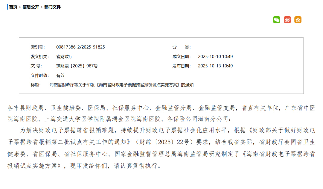 此次试点是深化我省财政电子票据改革、推进数字政府建设、服务自贸港建设的重要举措。随着试点落地,将有效破解群众反映的跨省票据获取难、真伪鉴别难、报销周期长、流程繁琐、成本高等难题,尤其是较好地解决来琼游客的“后顾之忧”,促进高端购物、高端医疗等境外消费回流,减轻报销单位逐张查验、异地查证等负担,实现“数据多跑路,群众少跑腿”,让财政电子票据社会化应用更加便民、快捷、高效。